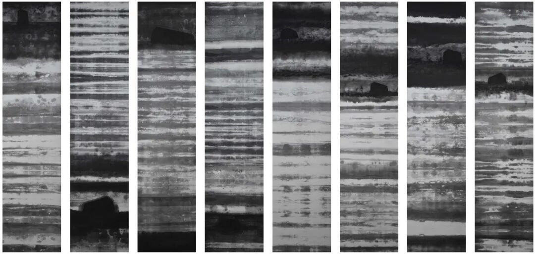 《波光》,墨、宣纸,33x135cm(x8),2019