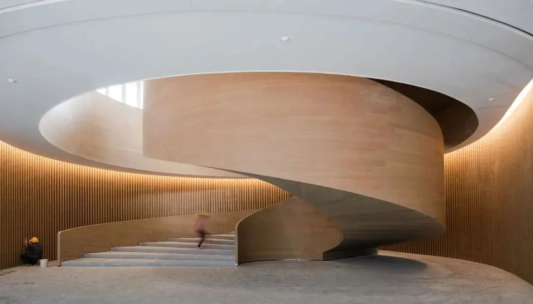 即便不是冲着艺术展品而来,徜徉在天府美术馆,于室内建筑中流连穿梭,上下旋转楼梯中留下靓影,或是从一楼落地玻璃窗望向湖水,阳光洒进来,是一种悠扬之味。