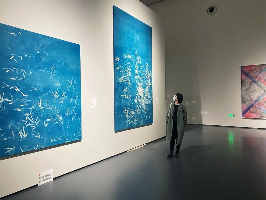 我的双年展之旅正是从天府美术馆开始的。来到展馆内,即便不是周末,也人头攒动,男女老少,兴味盎然,有忙着拍照发朋友圈的、有细心观展的,更有许多大学生,带着一份好奇与学习的心态前来,场面甚是热闹火爆。观展氛围很好,遇到几对老年人,均是夫妻,在抽象艺术画作前驻足,慢慢品味,微笑交谈,度过了一个浪漫又充满文艺氛围的下午。