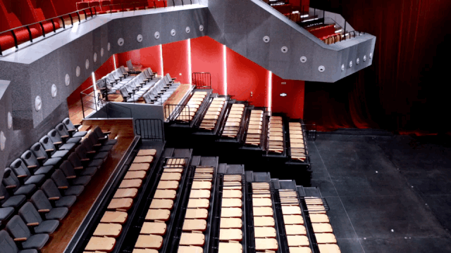 空间布局方面,原本的舞台之下是可以容纳647位观众的固定座位,分为上下两层,还设置有楼厢、堂厢以及可活动观众区和独立的VIP包厢。这样的布局更像一个传统的戏剧殿堂,让观者在舒适的尺度中享受舞台剧、音乐剧、交响乐的洗礼。
