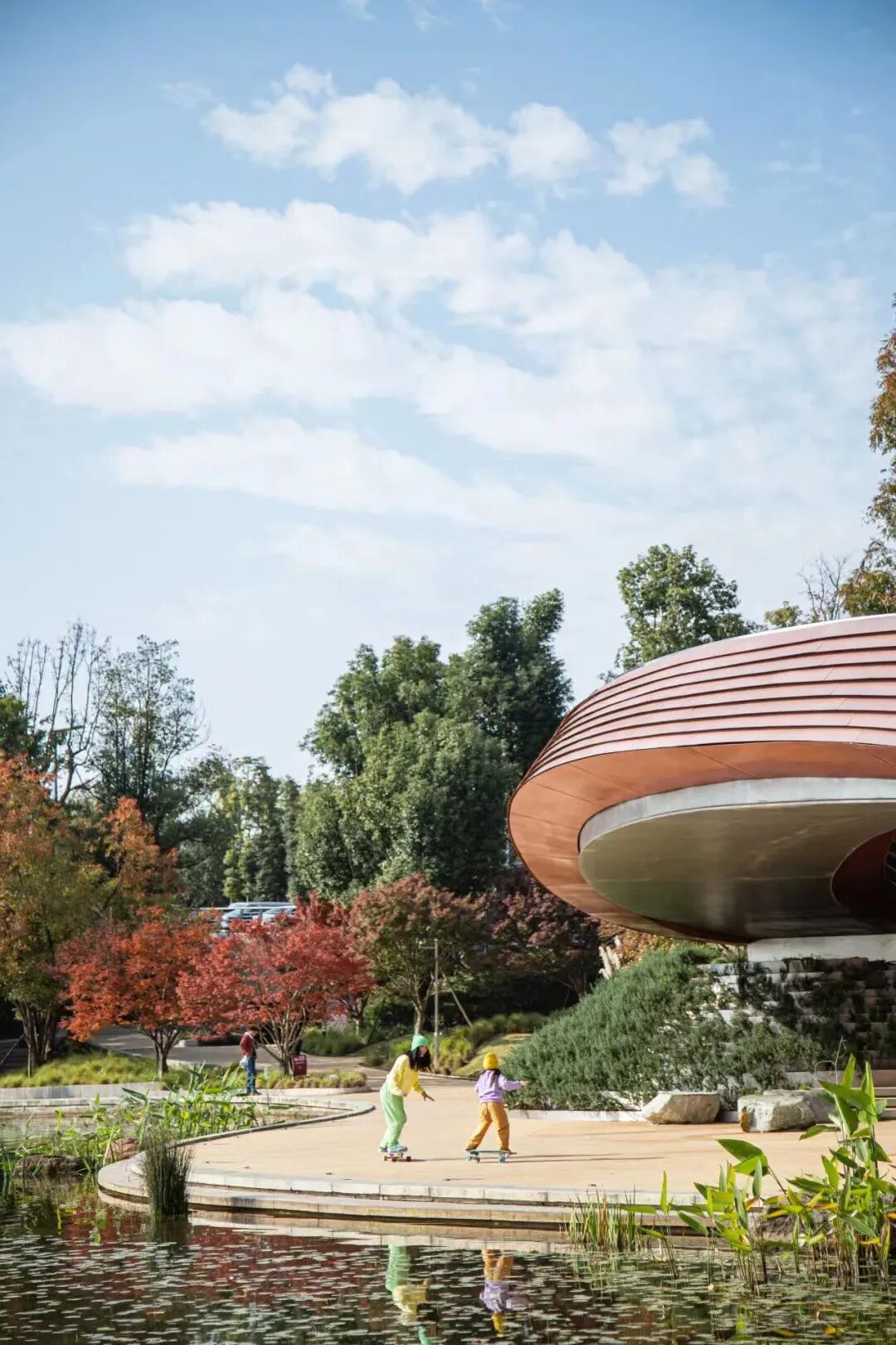 它迂回盘旋的曲线代表着对量子跃迁轨迹的想象,是赋予空间与时间的另一重解读,也如小径一般,将人们引入到“花园”的深处——麓湖水上剧场。