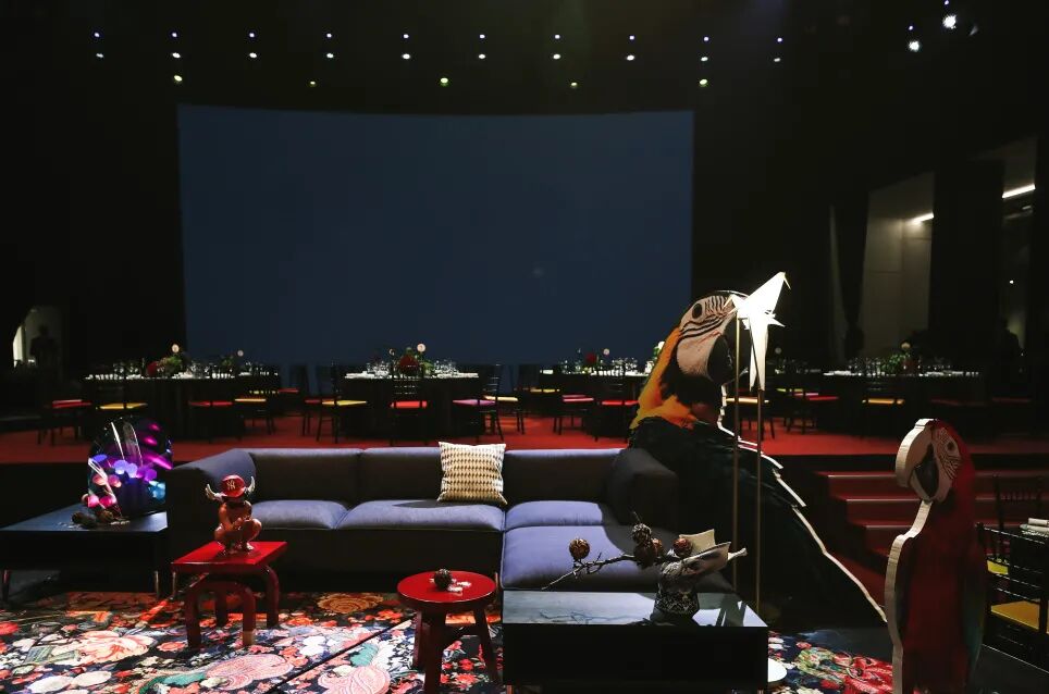 在麓湖水上剧场举行的颁奖晚宴,由荷兰知名设计家具品牌Moooi受邀带来别开生面的主题设计,以“珍奇动物系列(Extinct Animals Collection)”“Rendezvous TokyoBlue东京蓝”为主题,独家设计了三座家居装置展,与麓湖水上剧场的建筑设计交相呼应,呈现出独一无二的效果。