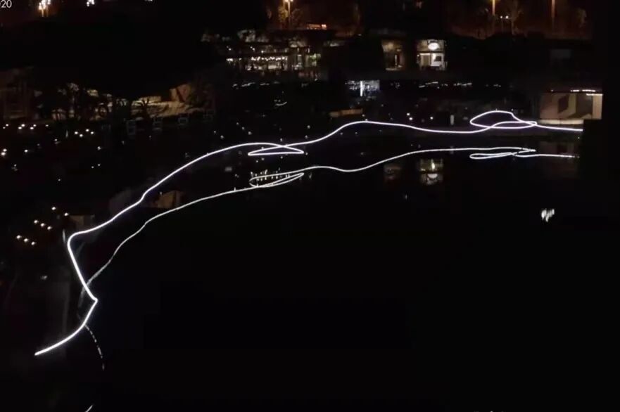 颁奖盛典的现场被精心设计成了一个沟通人、自然和城市的“生境花园”。在麓湖这片巨大而清澈的人工湖畔,装置艺术家兼导演王茂布置了绵延数十米的条状灯带。