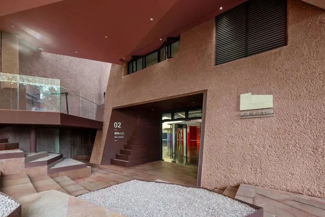 红灰撞色设计与大屏幕 / 图片来自麓湖水上剧场