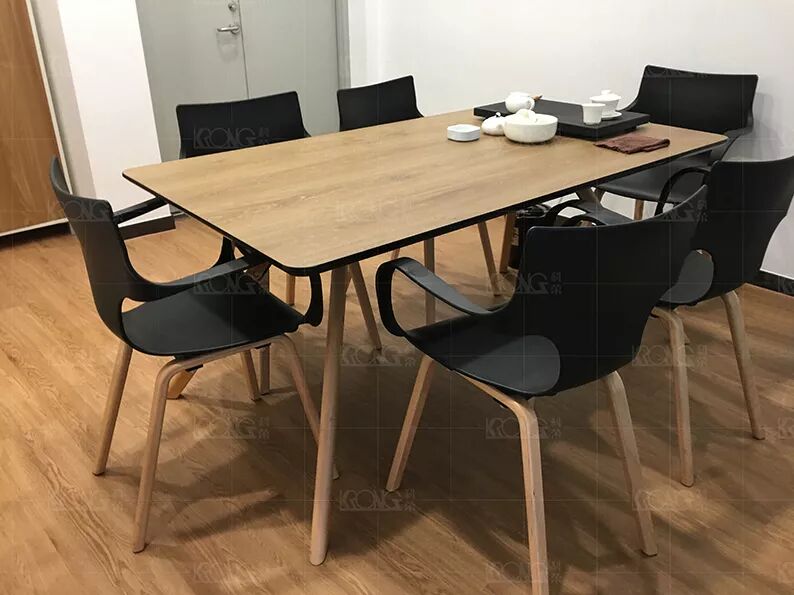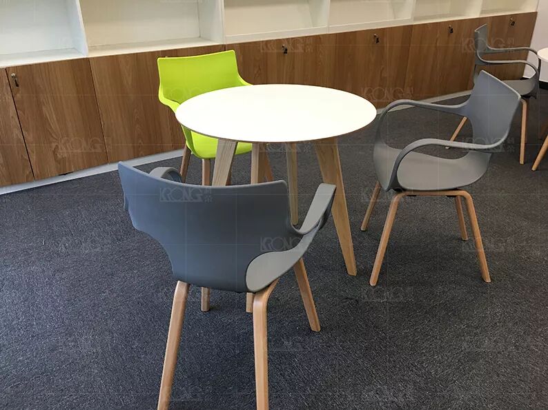 培训区利用木板桌面搭配黑色富生升培训椅,原木材质讲台与人寿公司logo相互映衬,营造严肃且极富秩序感的培训空间。富升培训椅自带的侧边板为会议过程提供记录、存放的空间,减少外部因素影响。