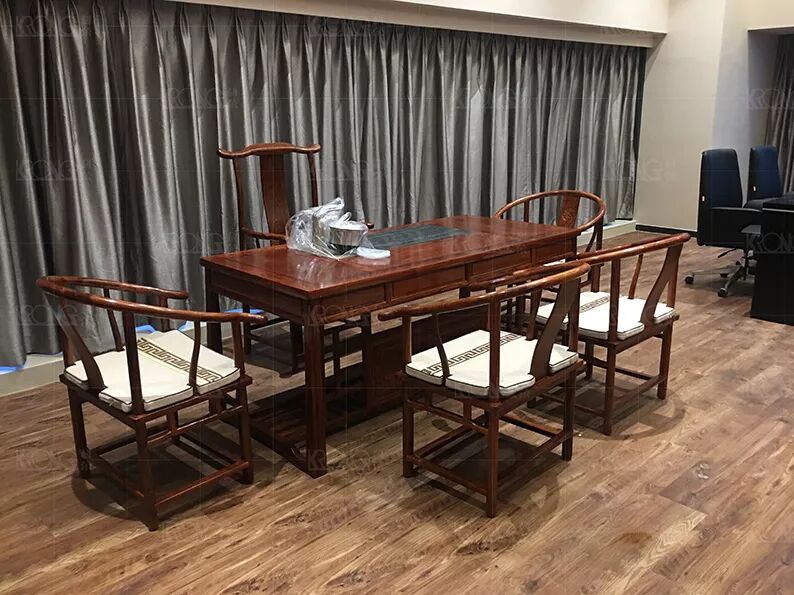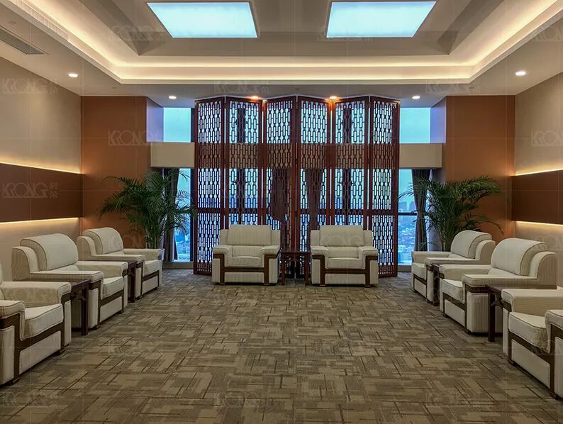 休闲区域与办公区域相辅相成,中式泡茶桌搭配舒适的圈椅,用于日常会客洽谈与个人休憩,劳逸结合。