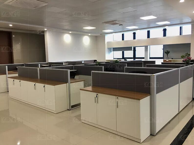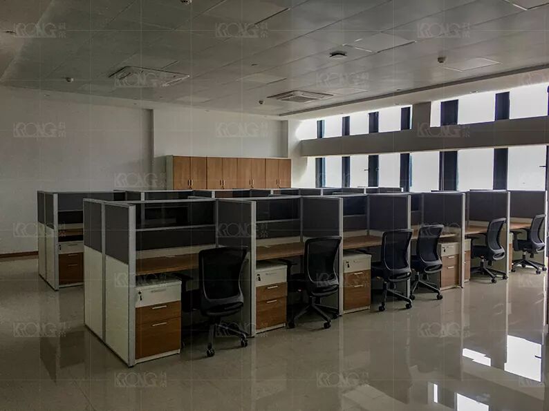 开放工作区体现拼搏务实的企业精神。浅灰色系的定制诺森工作位,保证空间整体性的同时,又为员工提供舒适的工作空间。多样化的副柜、立柜存储空间,极大满足员工对资料存储的需求。