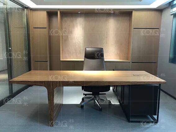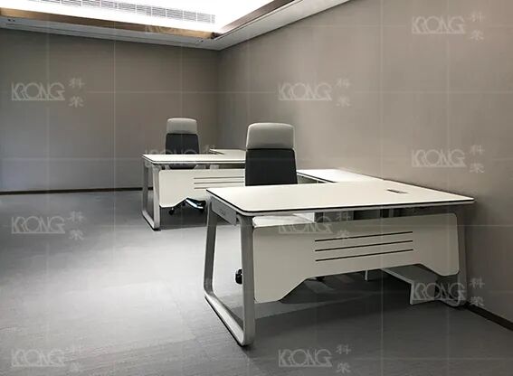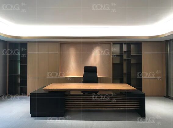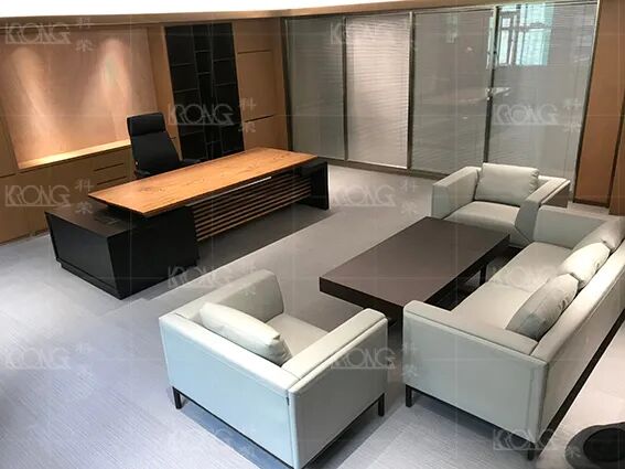 主管办公室采用结构轻巧的奕代班台,搭配世轩茶几,实木与皮质的组合更显空间的气质感。又可降低空间的承重感。