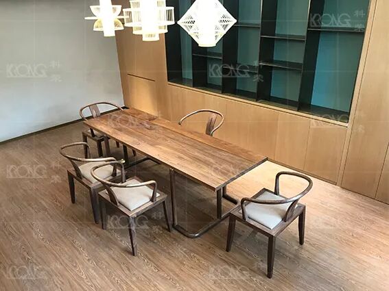 茶室项目中有2个茶室空间,需要稳重正式的空间风格,因此选用韵茶几和臻梵两款实木茶几。蕴藏传统智慧的榫接结构,提升茶室空间的格调。