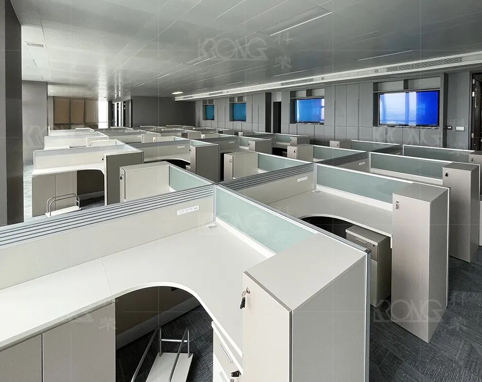 员工工作区,采用新款的诺森工作位。浅色的工作位,减少环境中的视觉干扰。新款诺森工作位,更加关注员工的人文需求。副柜区域,配备有固定折叠床,方便员工午休。桌面侧边也提供高柜的收纳空间,能满足日常办公时,正装的收纳问题。