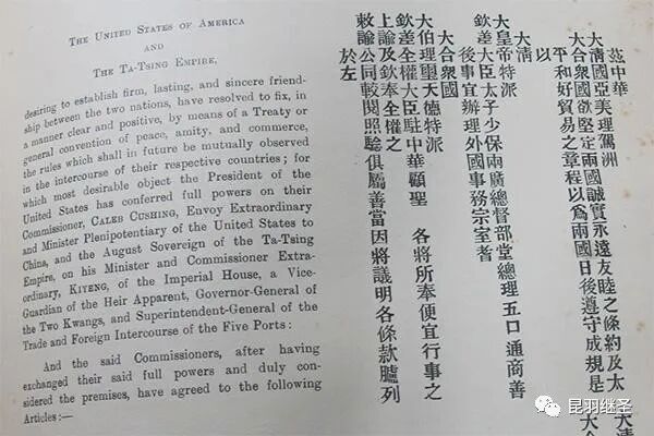请看《望厦条约》第一句话:"兹中华大清国、亚美理驾洲大合众国欲坚定两国诚实永远友睦之条约及太平和好贸易之章程。"