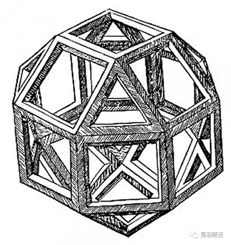 达芬奇所绘的菱方八面体,1509年出现在卢卡·帕西欧里的《神圣比例》中