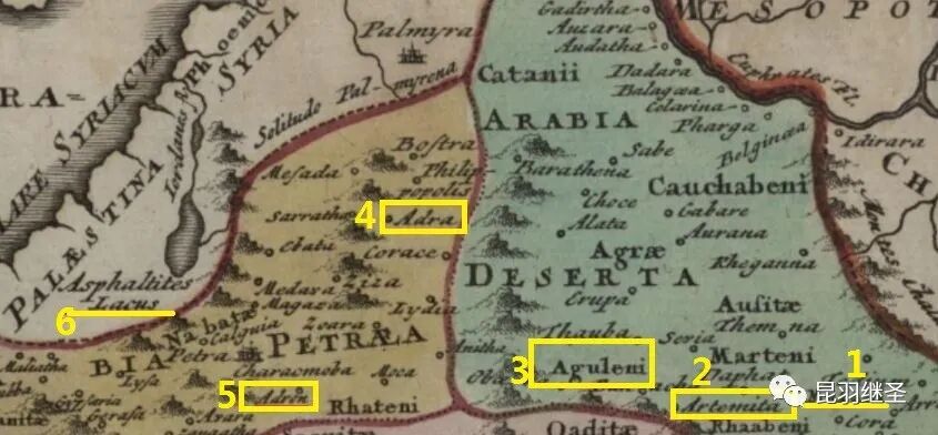 4或5是阿都民城(4是Adra,5是Adron),6是也勤朵思城(Asphaltites Lucus,汉人控制,出产撒黑剌镔铁刀)。