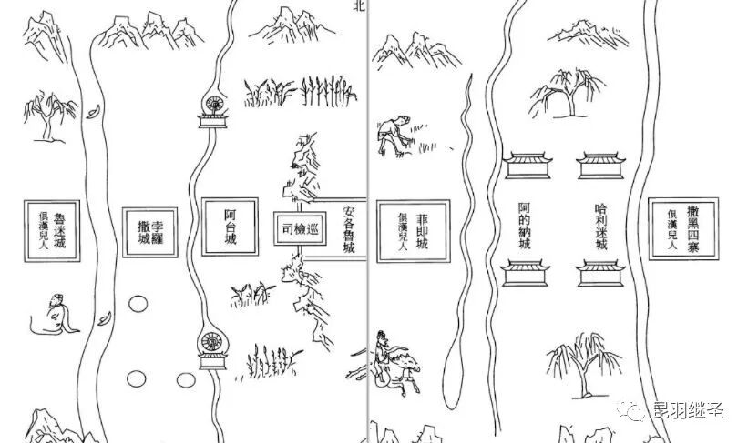 海之再西,则有鲁迷城(ROMANIA)“其城二重,有自立王子,有缠头回回及汉儿人”。而《西域土地人物图》则画得更具体,指出鲁迷城“俱汉儿人”,因此鲁迷城至少是汉人所控制的区域。