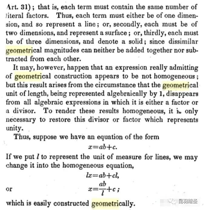 上图黄色高亮部分即为罗密士版本中的“几何”的英文单词“geometrical”。