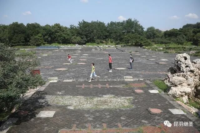 黄花阵迷宫:迷宫矮墙是砖制的,在迷宫四角种植了龙爪槐,在矮墙上种了绿植。