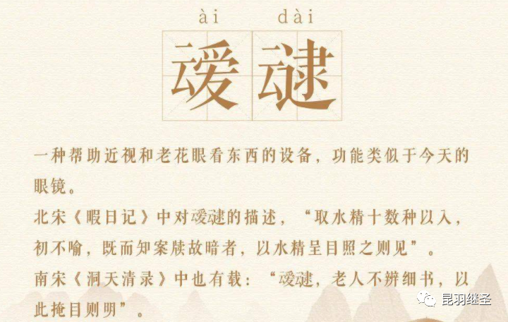 宋代,双片老花镜大量在文献中出现,古人将之称为“叆叇(ài dài)”。