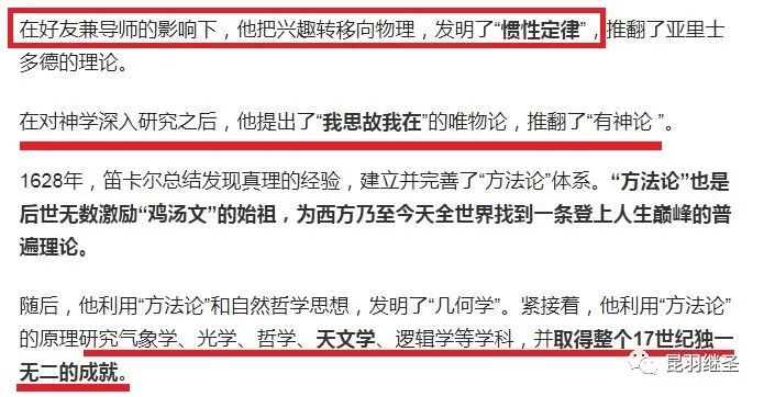 在西吹的文笔润色下,笛卡尔却成了一个贵族子弟,就读的是贵族学校,且有钱任性,所以有钱搞研究,可以思考人生。他们只字不提笛卡尔是神学家,10岁就被送入弗莱切耶稣会学院的事情。