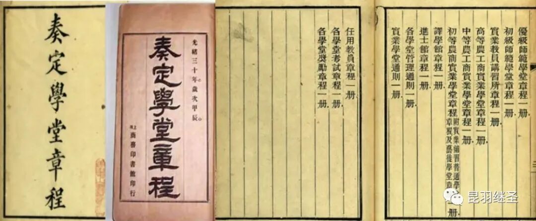晚清政府于1904年1月颁布了学制系统的文件《奏定学堂章程》。该文件于光绪二十九年(1903年)制定,由张百熙、张之洞、荣庆等奏拟,又称癸卯学制。