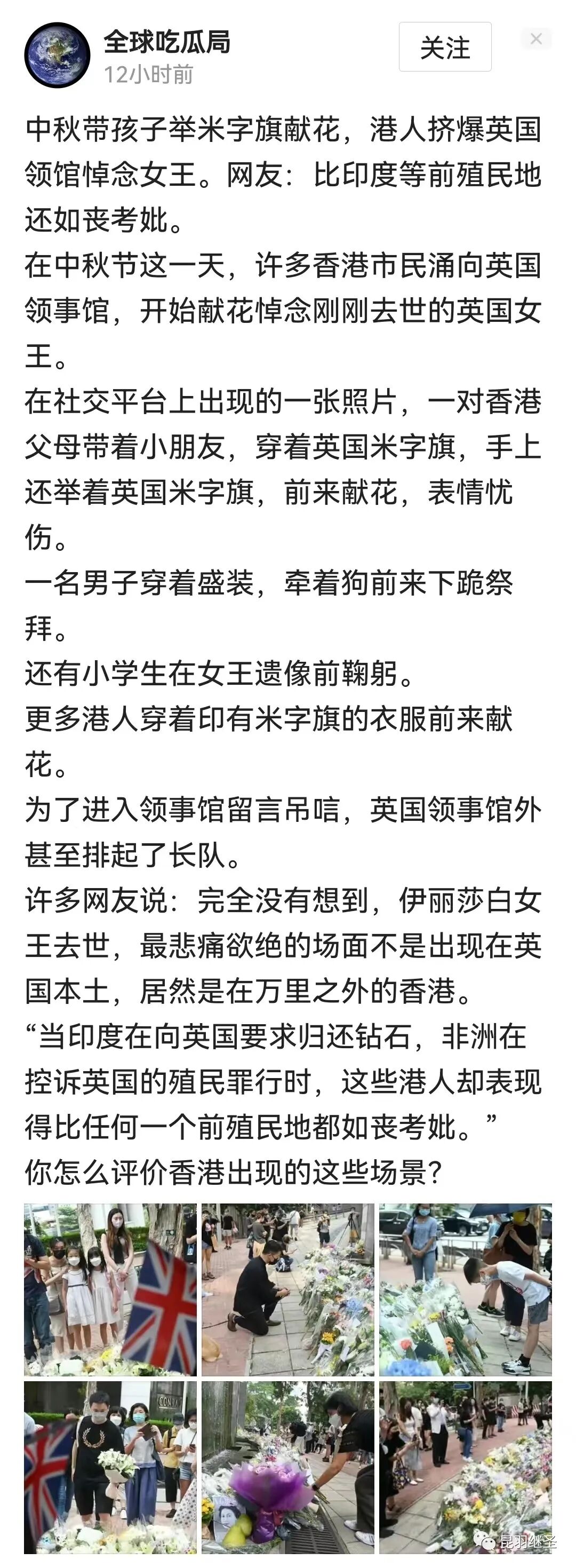 据说,港人为了悼念伊丽莎白,挤爆了英国驻港领馆,居然比印度、肯尼亚等前殖民地还要积极,如丧考妣。