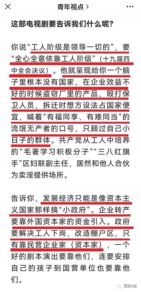 文学不是不可以批判,不是不可以描写落后,不是不可以发人深省,但首先应该有个中心思想,有个主旨,既然是描写社会变迁的历史,那么肯定有好的一面、也有坏的一面,这才是正常的。