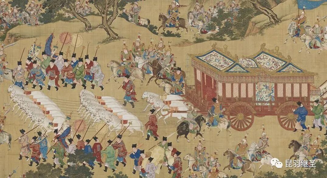 虽然无法得见明朝天子亲自祭祀时的壮观场景,但从后来的《出警入跸图》中仍然可以窥得一貌。「出警图」与「入跸图」虽是各自分开的二幅长卷,但是所绘的却同是扫墓、巡视的过程,因而通常被合称为「出警入跸图」。