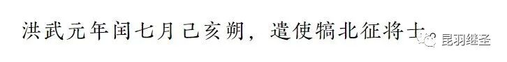 根据《大明太祖高皇帝实录》卷三十三记载:洪武元年闰七月己亥朔,遣使犒北征将士。