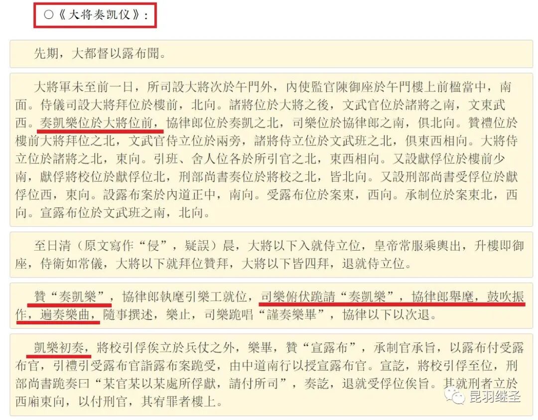 也就是说,大明按照唐宋军礼之制,大军出征前要祭告武成王庙;凯旋归来,要奏凯乐(凯旋曲),并有献俘仪式。