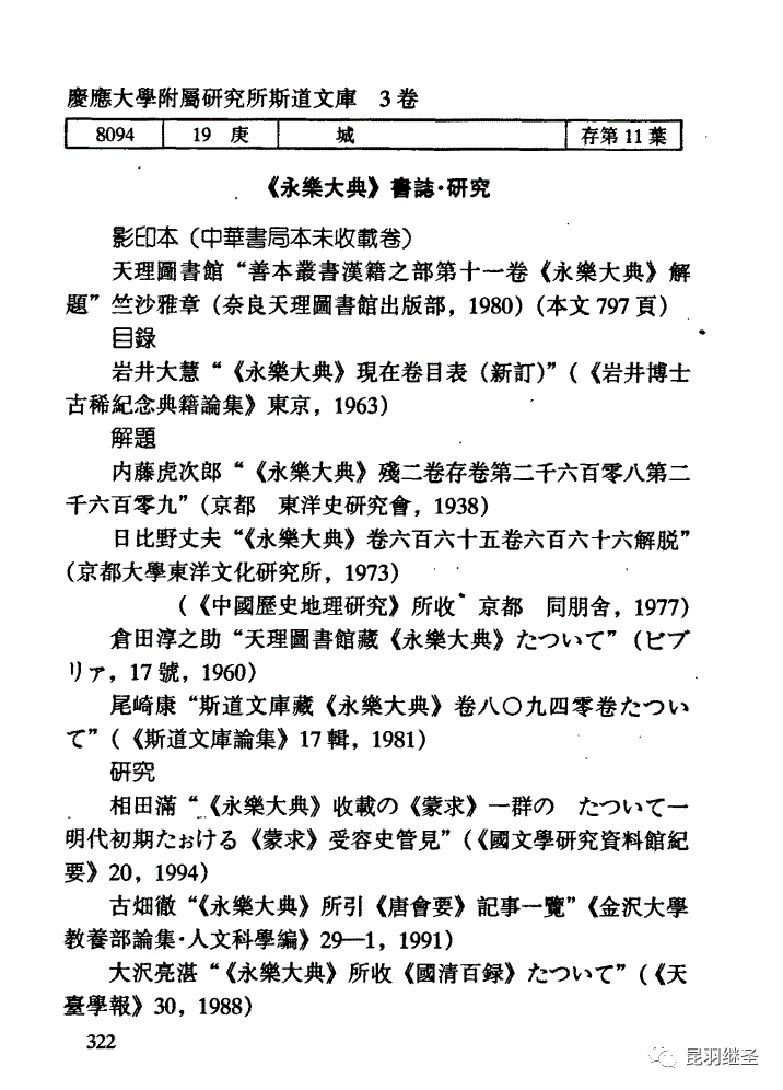 根据《唐本商的变迁·14永乐大典篇》(《纸鱼昔话 明治大正篇》,八木书店)记载,《永乐大典》在义和团事件后流于市井。罗叔言到访京都时,在董授经斡旋下进口了10册左右,被各图书馆购入一册作为样书,一册150日元。1923年,田中庆太郎前后共购入20多册,卖给美国国会图书馆五六册,约15册分3次卖给了东洋文库。东洋文库原有莫里循旧藏永乐大典数册,所以估计应该有20余册。