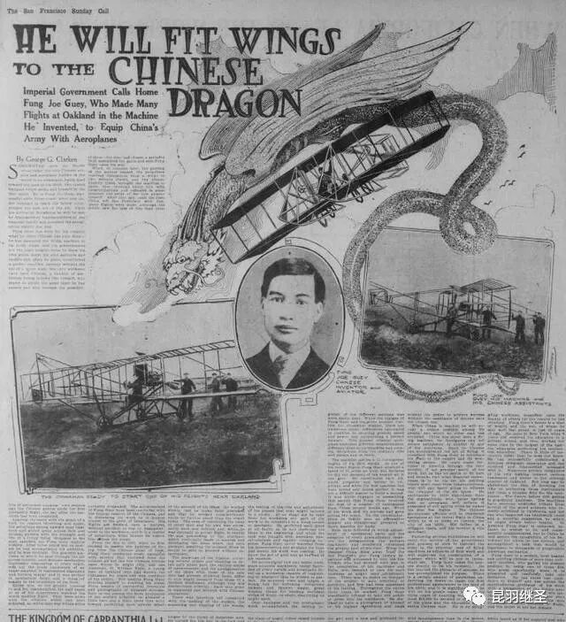 1909年9月23日,一家名为《奥克兰论坛》的报纸在显著位置登载了一则新闻:“中国飞行员成为海岸飞行第一人”(Chinese Aviator Fist to Fly on Coast),报道了一个名叫冯如的中国人驾驶他自制的飞机飞行了几百米的事迹。