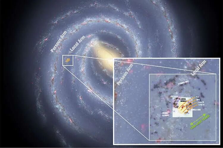银河系中有两大射电气体结构——“北极分支(North Polar Spur)”和“扇形区(Fan Region)”,此前人们以为这两个结构是独立存在的,但是这一次人们发现,它们实际上是被许多绳状的纤维连接起来的。从地球的角度看,这些连接体整体上看起来就像是一条包裹着我们太阳系的隧道。