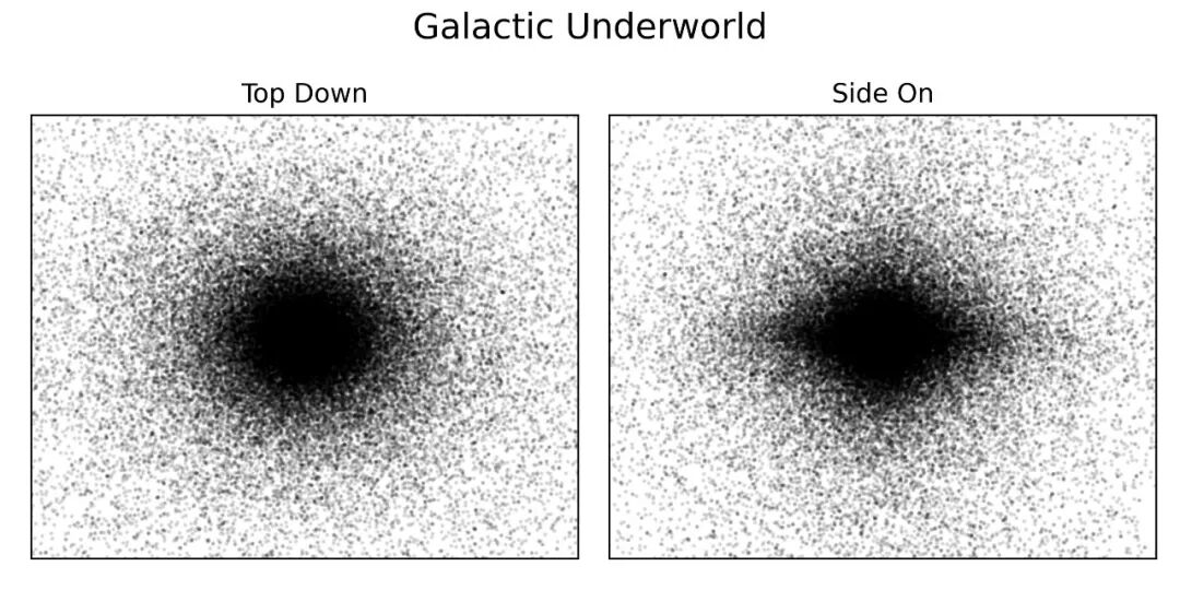 从侧面看,这个银河“冥府”的厚度是银河系本体的三倍;假如俯视,我们则会发现它失去了银河系标志性的旋臂。随着时间的推移,超新星爆发施加在死星身上的动能,抹去了这一特征。四处乱飞的死星大部分进入了银晕,且至少有三分之一会离开银河系,进入茫茫的星系际空间。