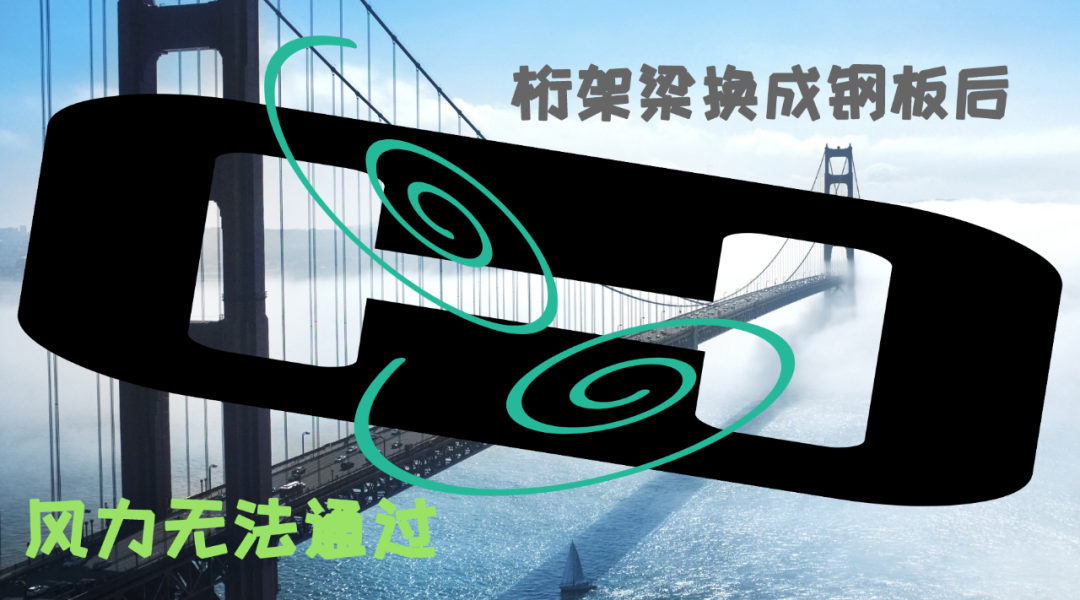塔科马海峡大桥倒塌的当日,大桥的晃动就与这种漩涡脱落现象形成了共振,所以大桥越晃越大,最终毁于一旦。当然,共振并非唯一原因,那么多悬索大桥,怎么只有这座坍塌了呢?我们可以回过头来说说那个被取消的桁架梁了。