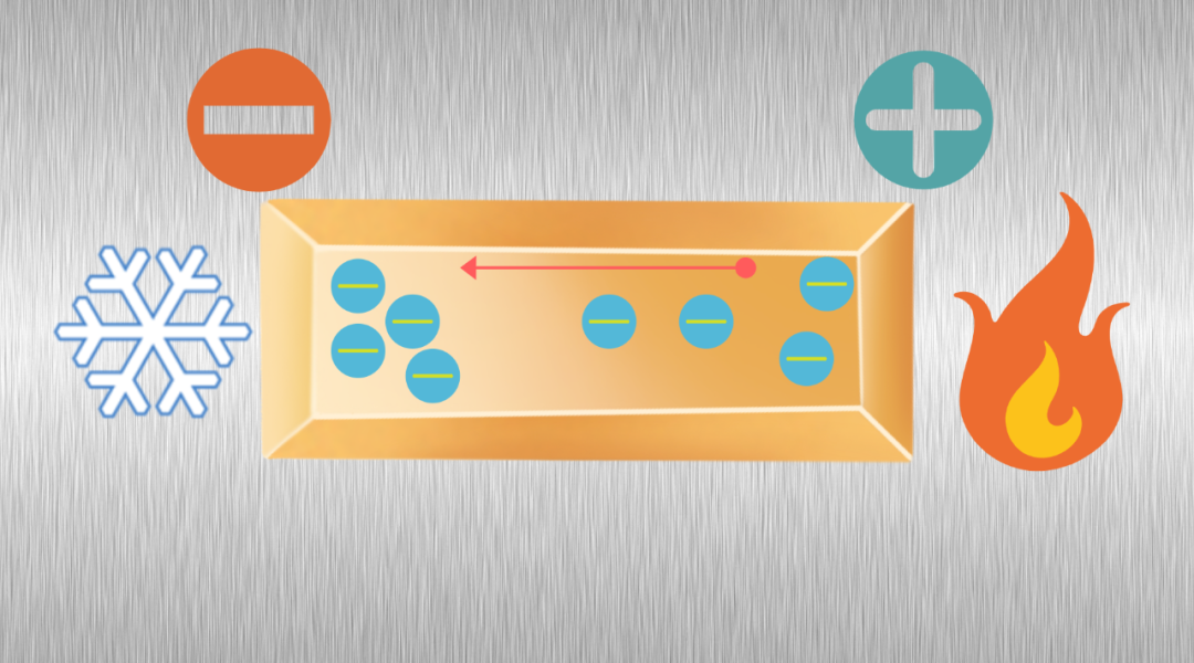 其实热电效应的原理并不复杂,我们都知道,金属之中是带有电子的,而电子带有负电荷,在一般情况下,电子在金属之中的分布是比较均衡的,但如果我们对金属的一端进行加热,这种均衡就会被打破。温度的本质实际上就是粒子运动速度的快慢,所以加热的一端,电子运动的速度自然就会更快。