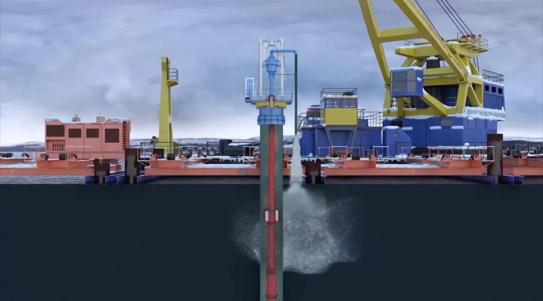 最后一种方法就是“钻孔”,钻孔实际上是打桩的一种衍生方法,海底地质情况复杂,有些地方岩石坚硬,桩打不进去,所以就要先向海底插入一个套筒,然后在套筒之中使用钻头进行钻孔,之后插入钢筋,最后浇筑混凝土,于是一个桥梁的根基就建造完毕了。在四种建造桥墩的方法之中,主要的建造部分都是在海中完成的,而并不会采用在“陆地上建造再运送到海中”这样笨拙的方法,而且如此笨重的桥墩也很难运过去。