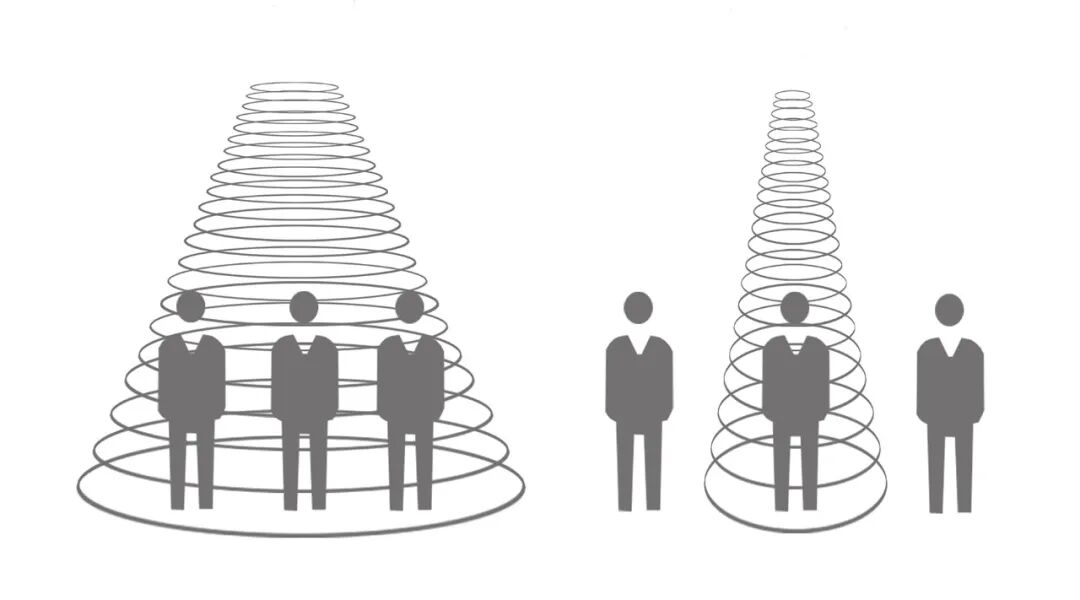 当声波传播出去的时候,会使大气压强受到扰动,从而产生变化,我们就将其称之为“声压”。简单来讲,声压就是在大气压强上叠加一个声波扰动所引起的压强变化,声音虽然是四散传播的,但在各个方向上所产生的压强却是不同的,在经过控制和处理之后,就可以让普通声源变为指向性声源,这就好比给一个灯泡加装了一个罩子,于是灯泡所发出的光就不再是四散开来的,而变成了一个光束。不同的是,这里所说的“罩子”并不是实体可见的。