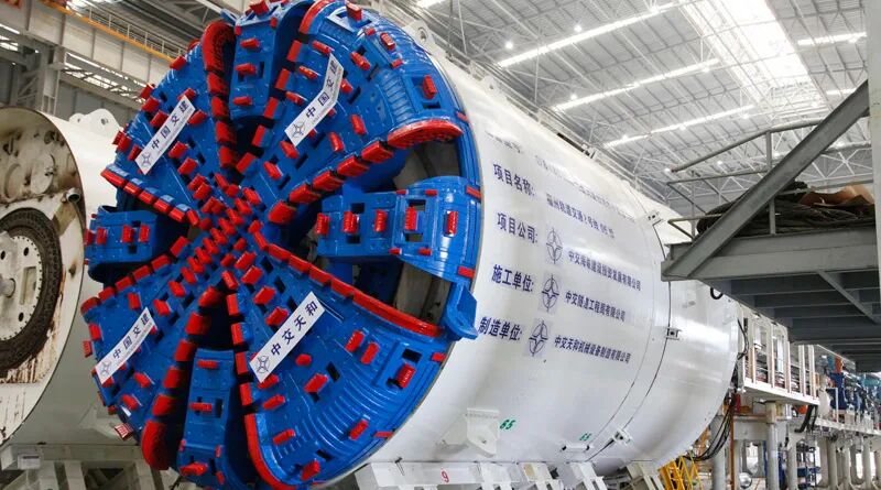 盾构机实际上就是一个巨型的挖掘钻头,通过十几米的钻头旋转将隧道向前挖掘推进,在挖掘的同时可以通过传送带将挖掘出的泥土运送到地面。
