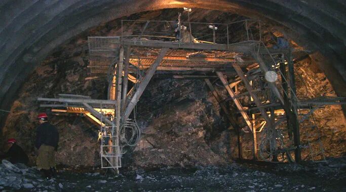 所谓传统的矿山挖掘方法,就是先挖出一小块隧道,然后做好支撑,再继续扩大隧道的横截面积,然后把扩出的面积再做好支撑,这样一步一步进行建造。