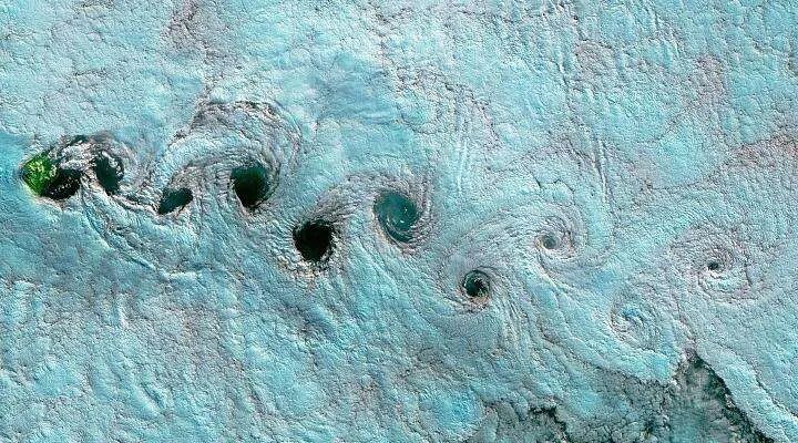 普朗特认为是实验装置的制作不够完美,但冯·卡门却有着自己的看法。冯·卡门通过观察发现,水流在受到圆木的阻碍后,会在流过圆木之后形成交错推进的漩涡。简单描绘一下就是,水流先是快速从圆木左侧通过,并在通过后形成一个下旋漩涡,然后水流又会快速通过圆木右侧,将第一个形成的漩涡推远,进而形成一个上旋漩涡,就这样,水流交错从圆木两侧通过并形成漩涡,这些漩涡又会被新形成的漩涡推远,冯·卡门将这种现象称之为“卡门涡街”。