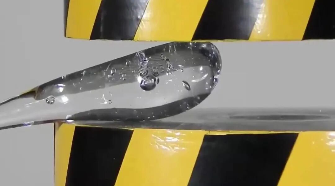 我们用一条硬纸板搭在两张桌子之间做成一个简易的小桥,然后把手机放上去,桥瞬间就塌了。当如果我们把这条硬纸板弯成拱形,再把手机放上去,它就可以支撑得住了,这就是形变使硬纸板具备了较强的压应力,所以可以顶得住上方增加的重量了。弄懂了压应力,我们再来看鲁伯特之泪。当烧热的玻璃融化后滴落于冰冷的水中,会瞬间遇冷凝固,但凝固是有先后顺序的。玻璃的最外一层会率先凝固,而此时内部还没有完全冷却,这就产生了一个差异,那就是外部瞬间冷却凝固,而内部是缓慢冷却凝固。