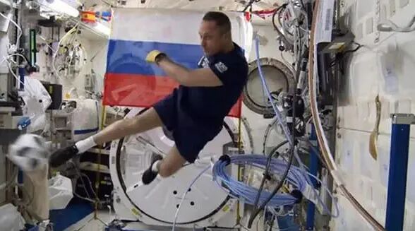正因如此,希望号实验舱成为了宇航员们在太空中的主要活动舱段,有的时候我们会在报道中看到一名俄罗斯宇航员在空间站中踢足球,后面可能还挂了一面俄罗斯的国旗,但是你可不要误以为这是俄罗斯的某个舱段,实际上它就是日本的希望号实验舱,几乎可以说国际空间站中所有的体育活动都是在这里进行的。