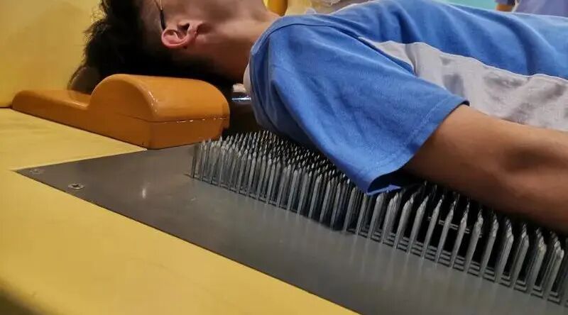因为针太多了,所以针板与人体接触的总面积其实是很大的,相应的,人体与针板之间的压强是很小的,所以人体自然就不会被针板所扎伤了。如果要是拿一块只钉了20根针的针板过来,谁也不敢往上躺。可见,从物理学的角度上来讲,胸口碎大石是一件非常平常的事情,如果这也能算是一种功夫的话,那么这个功夫谁都会。不过话虽然是这样说,但任何事情都有一定的技巧,胸口碎大石也是如此,专业的表演者是需要进行训练呢,我们没有掌握相应的技巧,也没有经过训练,贸然尝试很容易意外受伤。