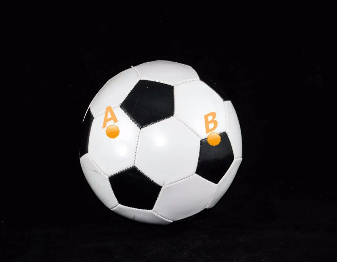 那么,什么是平直的时空,什么又是弯曲的时空呢?我们来举个例子,平直的时空就如同一个平面,假设在平面上有AB两个点,一个小球由A向B运动,在不受外力的作用下,它的路径将为A到B之间的连接的直线,因为这条路径是两点之间最短的距离。但弯曲的时空与此有所不同,它就如同一个球体,如果我们在一个足球的表面画上AB两个点,那么两点之间的最短距离是什么呢?连接AB两点的直线?不对。要在球体表面找到两点之间的最短距离,情况有些复杂。