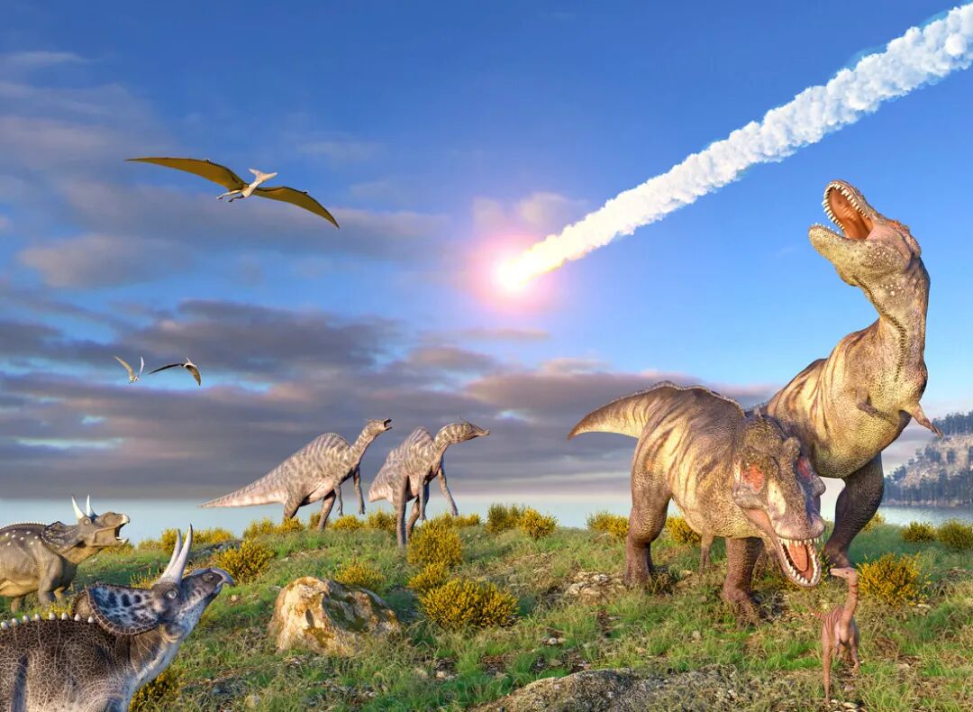 就是这样,哺乳动物们夹缝中求生存,在与恐龙共处的上亿年时间里保留下了希望的种子。恐龙是如此强大,看起来这种动物应该对地球实现恒久的统治,因为实在想象不到如此强大的动物如何才能够灭绝。然而一场意想不到的灾难发生了,这场灾难来自于天空,来自于深邃而神秘的宇宙,一颗直径接近10公里的小行星从天而降,在和地球大气发生强烈的摩擦之后坠落到了今墨西哥尤卡坦半岛上,并在那里留下了一个巨大的陨石坑。地球是一个与鸡蛋相似的类球体,外表坚硬,而内部却是大量的熔岩物质。强烈的撞击直接导致了一系列自然灾难的发生。