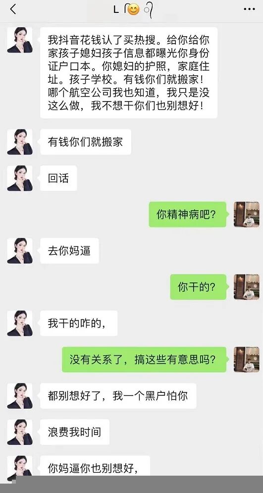 期间,不断有陌生人三更半夜加小缇的微信,发这些恐吓内容。小缇没有吵闹也没回应,直接拉黑冷处理。