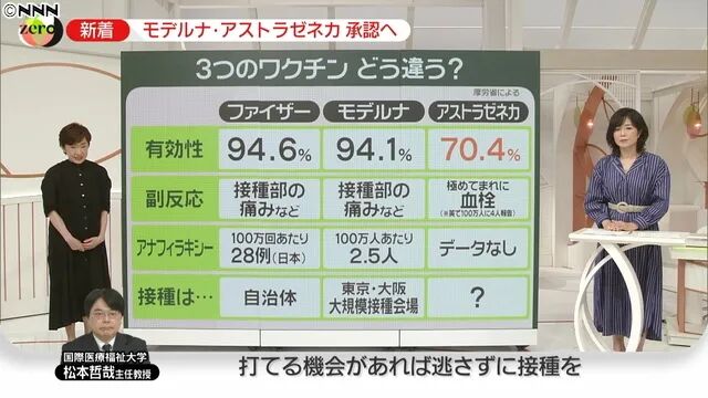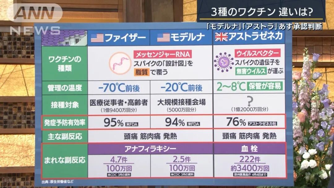 在日本的胖友们顺便参考一下,各大电视台做的三种疫苗对比。
