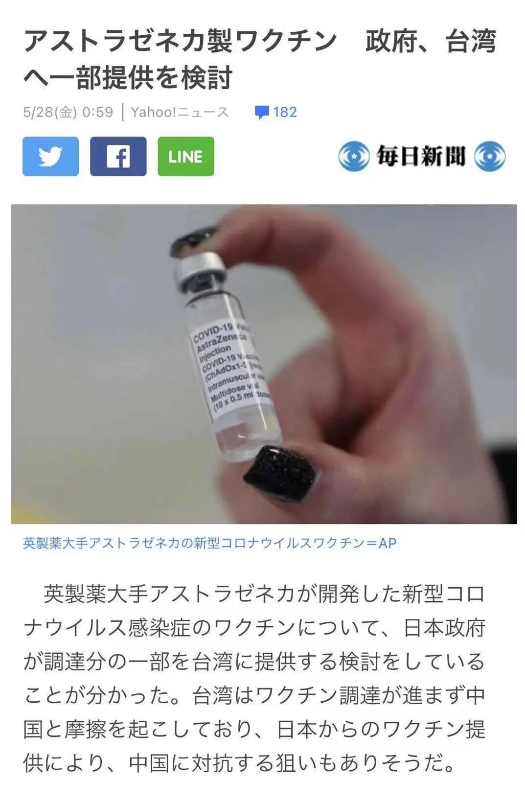 正关注着日本政府和阿斯利康那边会如何交涉,日本第一大报《每日新闻》给日本民众报了一个“大喜讯”:日本政府正在讨论,将部分阿斯利康疫苗供应给台湾省。