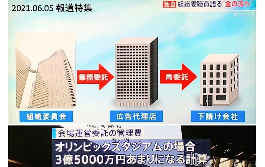 此外,奥组委向广告代理商委托管理奥运赛场。委托费用35亿日币,其中的10%,即3亿万5000万日币作为管理费支付给广告代理商。