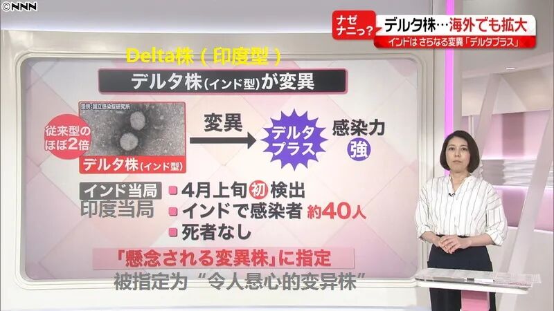 这种变异病毒的感染力是普通型的1.8倍。日本境内已经发生过数次集体感染印度型变异病毒事件。