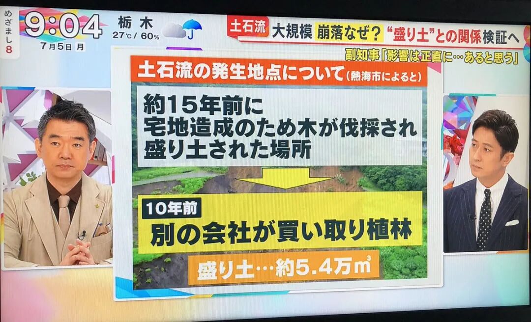 泥石流爆发之际,正值东日本地区连降暴雨。那两天的降水量达到了往年整个7月份的总量。本以为只是天灾,却不曾想它竟然更是一场人祸。